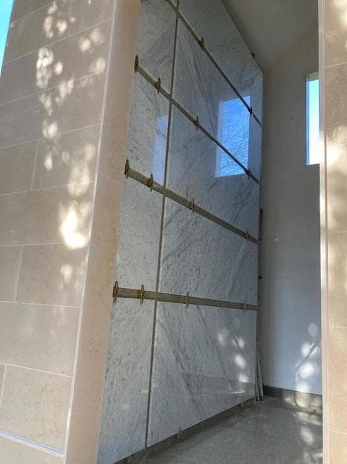 Monumenti funerari in travertino, lapidi in pietra, tombe in marmo bianco acqua, acqua bianca venata, rosé del Portogallo e molti altri ancora.